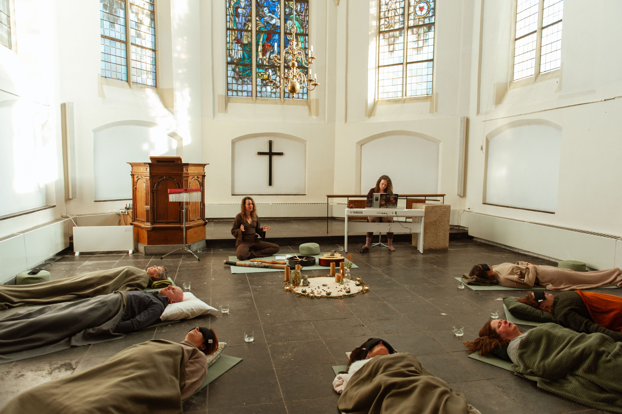 De ruimte is gevuld met zachte klanken, warme cacao en live muziek die je meeneemt op een reis naar binnen. De locatie blijft nog even geheim, maar we kunnen alvast zeggen dat het een plek is die helemaal past bij de sfeer van de avond.